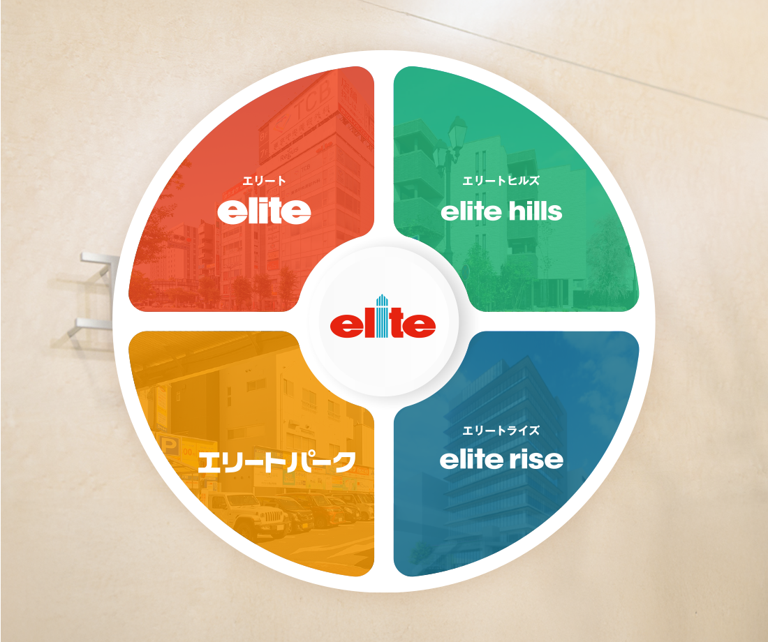 エリートグループは、商業・オフィス・住宅・駐車場の4つのブランドで構成されています。